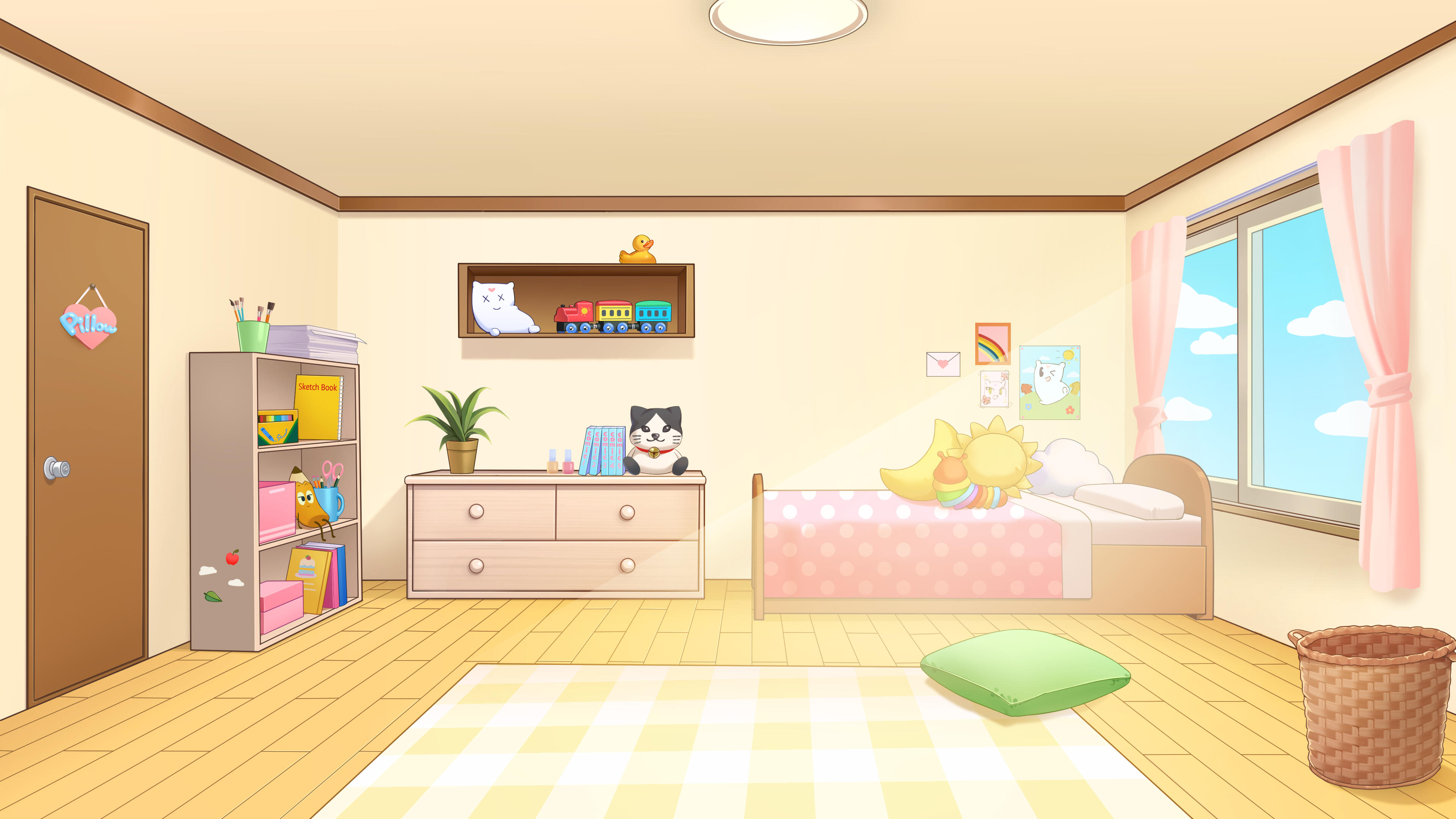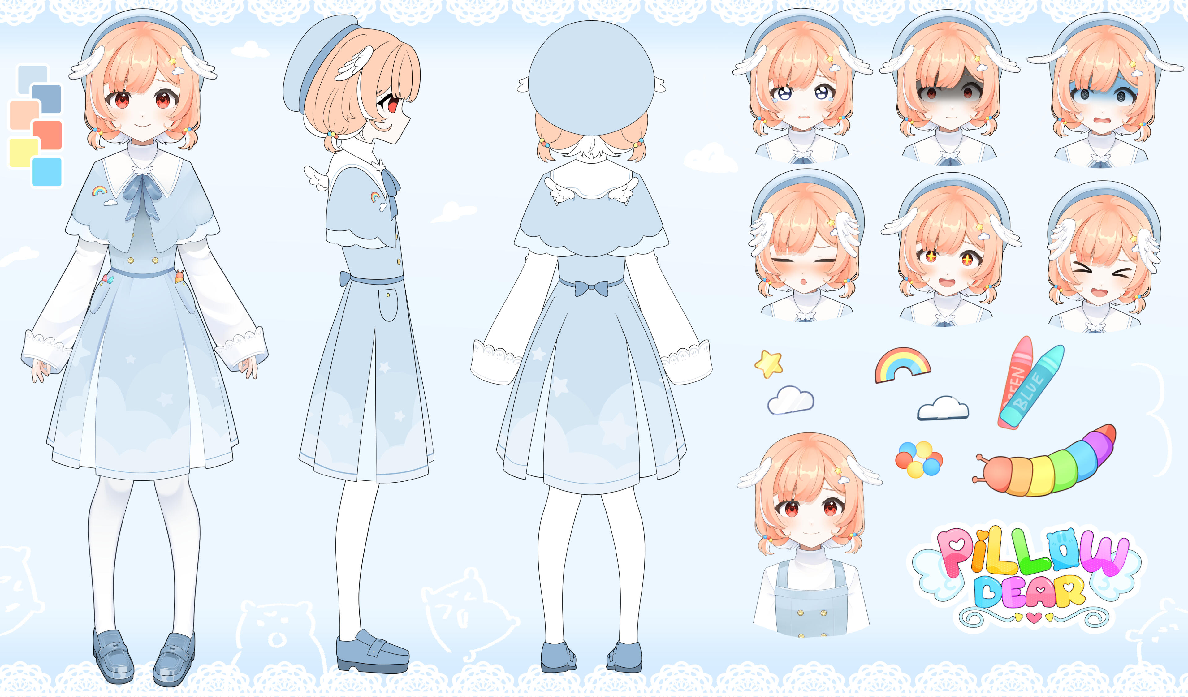 Once a real girl, Pillow died and was reincarnated as a dream entity, where she resides in the Dream World. There, she attends school to learn all about her new role as an entity, and how to make friends. Pillow’s number one goal is to help Piwwos, you, have a good night's sleep with happy dreams! No matter what, Pillow will always do her best to fight off all nightmares.